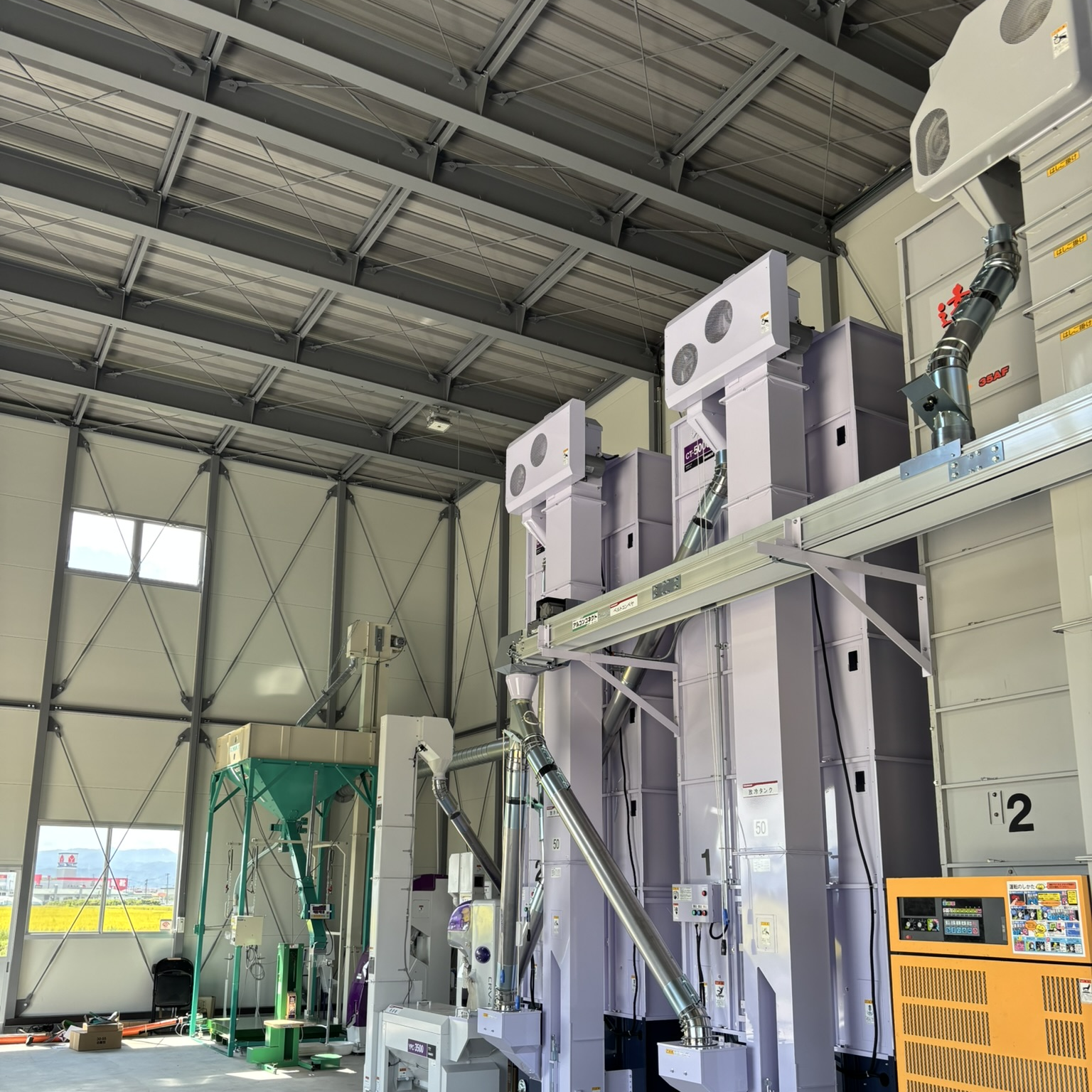 設備老朽化、事業拡大のため、米乾燥調整設備を新築移転し、今年9月より稼働しています。